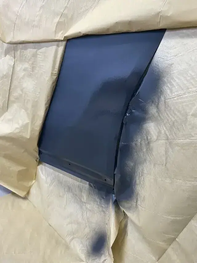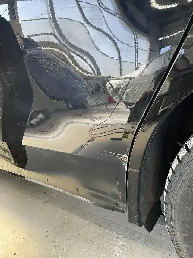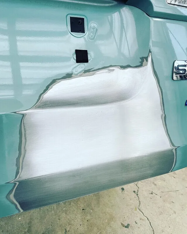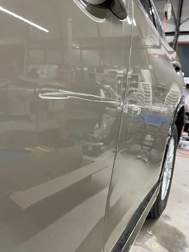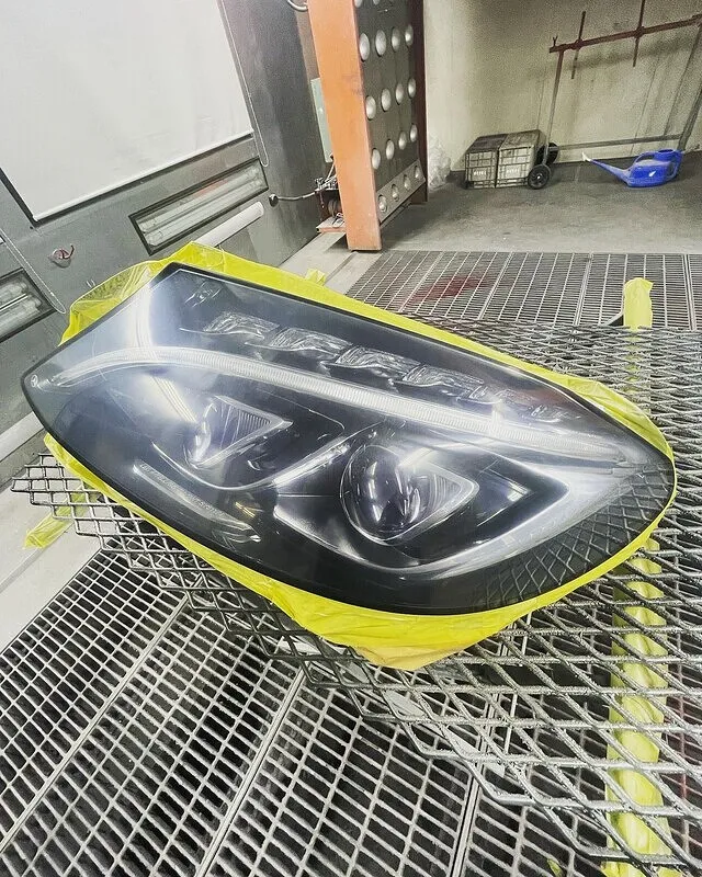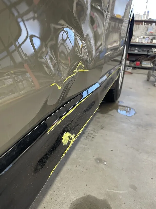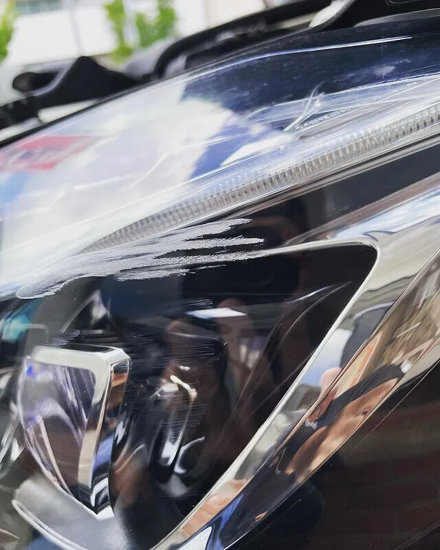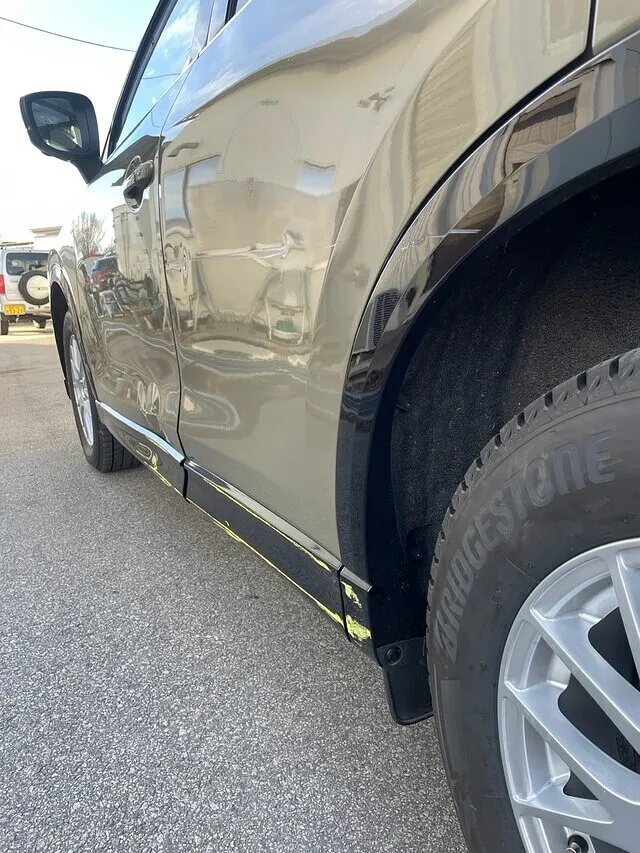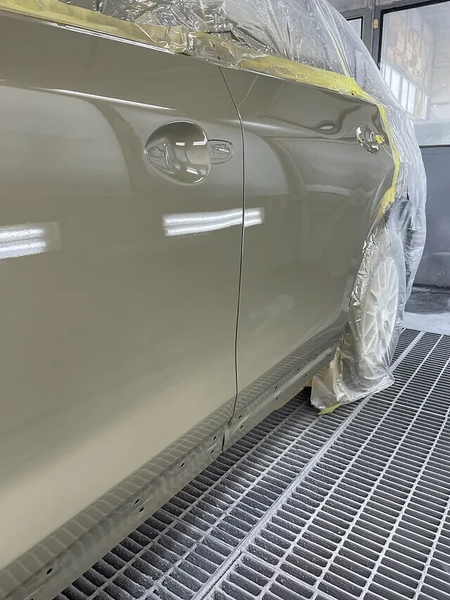 輸入車は部品が大変、高額ですのでこの度はリペアで対応しました。傷を研磨し下地をしっかりと整え純正と同等のコーティングを施します。