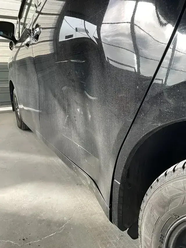 奥様のご実家に立ち寄った際に周辺が暗く見えにくかった事もあり、マツダCX5の左側面をガレージの支柱に擦ってしまったそうです。